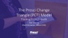 Prosci Change Triangle (PCT) Model is a simple but powerful framework for understanding the critical aspects of successful change and how they relate to project health. Weakness in any of the four aspects—Success, Leadership/Sponsorship, Project Management and Change Management—indicates that the project will struggle. The PCT Model is an effective tool for gaining clarity and alignment on what your project aims to deliver, and it enables you to identify actions to improve project health over time.